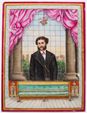 Secrétaire en bois à l'imitation de la marqueterie à décor d'un v...