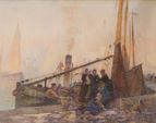 AUBUSSON XXème siècle Le repas des pêcheurs Tapisserie tissée par...