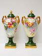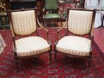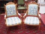 Paire de fauteuils en bois naturel mouluré et sculpté de flambeau...