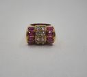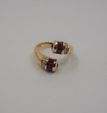 Bague toi et moi en or jaune sertie diamants et rubis taille bagu...