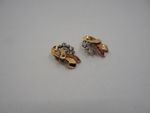 Paire de boucles d'oreille en or jaune serties pierres roses et d...