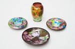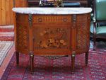 Commode demi-lune en bois à décor imitant la marqueterie de vases...