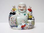 Cache-pot en métal peint à décor de frise de putti reposant sur p...