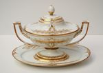 LIMOGES Guéridon tripode en porcelaine émaillée blanche à plateau...