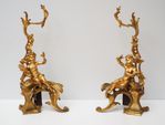 Paire de chenêts en bronze doré et ciselé à décor rocaille ajouré...