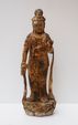 CHINE - XXe siècle Stauette de Guanyin debout en bois à traces de...