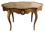 Table de milieu en marqueterie dite "Boulle", d'écaille et de lai...