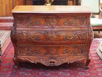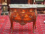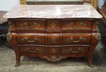 Commode tombeau galbée toutes faces en bois et imitation de marqu...