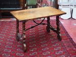 Table en noyer à piétement découpé entretoisé de liens en fer for...