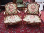 Paire de fauteuils en bois naturel mouluré et sculpté de motifs f...