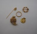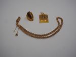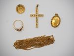 Lot comprenant : - Bague or jaune - Pendentif or jaune dent - Méd...
