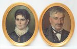 LOVERA (XIXe-XXe) Paire de portraits Huiles sur toile en médaillo...