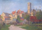 Yves MOISAN (1908-1976) Vue de village Huile sur carton signée en...