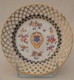 Assiette en porcelaine à bords de croisillons ajourés dorés, au c...