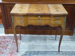 Coiffeuse en placage de bois de rose, plateau ouvrant par un abat...