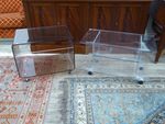 Lot comprenant deux tables basses sur roulettes, l'une en plexigl...