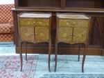 Paire de chevets en placage de bois de rose à décor floral marque...
