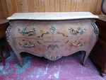 Commode sauteuse en placage de bois de rose à décor floral marque...