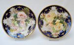 HAVILAND Paire d'assiettes en porcelaine polychrome à fond bleu à...