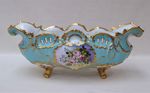 VIGNAUD LIMOGES Paire de plats oblongs en porcelaine polychrome à...