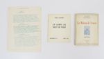 Provenances : bibliothèques parisiennes (dont collection de M. R***) et limousines (dont bibliothèque de Mme D***), et à divers. Voyages dont Moyen-Orient, Turquie, La Réunion, etc. ; Marine ; Atlas – Géographie ; Paris et environs ; Régions diverses Gastronomie – Œnologie ; Jules Verne ; Livres du XVIe siècle jusqu’à 1620 ; Livres illustrés du XXe siècle ; Curiosa ; Belles reliures signées ou aux armes ; Surréalisme et Avant-gardes ; Beaux-Arts – Architecture ; Agriculture – Vie à la campagne ; Botanique ; Histoire naturelle ; Médecine ; Sciences ; Photographie ; Chasse – Equitation ; Littérature dont nombreuses éditions originales XXe avec envois (de René Char notamment) ; Bibliophilie et histoire du livre ; Histoire ; Noblesse-héraldique ; Enfantina ; Divers.