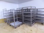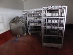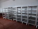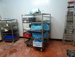 ETAGERE INOX + 2 CHARIOTS + SUPPORT POUBELLE