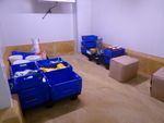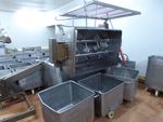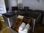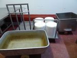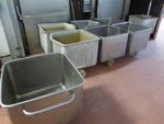 TRANSPALETTE EN L'ETAT + 2 BACS INOX SUR ROUES