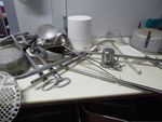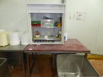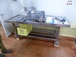 TABLE DE DECOUPE, 2 SUPPORTS POUBELLE INOX, PUPITRE INOX